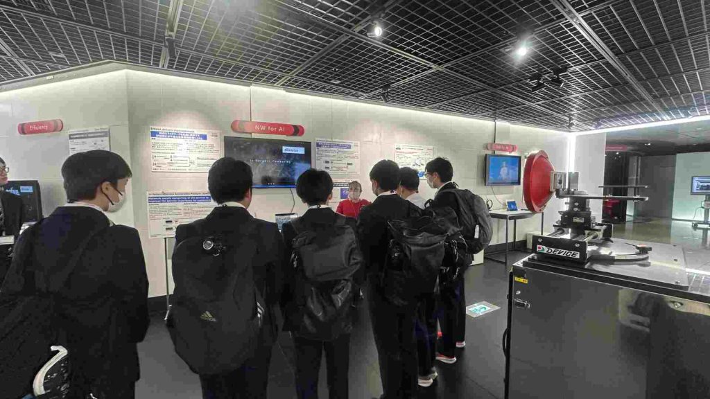 ICT分野への関心が高く、各展示の説明に真剣に耳を傾けるとともに、疑問点について積極的に質問する姿が見られました。次世代通信がもたらす未来の社会に触れ、生徒たちは非常に高い関心を示していました。