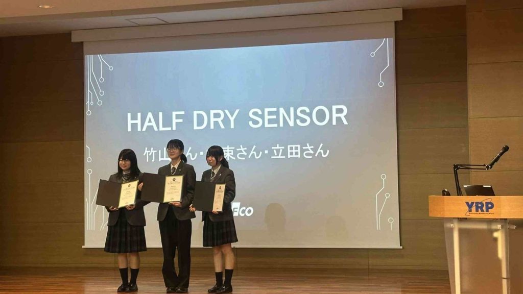 本発表会は、YRPに本社を置く株式会社ニフコの先進技術である「電池レスセンサー」をテーマに、実社会での活用を見据えた課題研究として実施されたもので、今回で4回目の開催となります。生徒67名が21チームに分かれ、約半年にわたりアイデア創出から検討・ブラッシュアップまで取り組み、企業の実務的な視点も取り入れながら完成度を高めてきました。