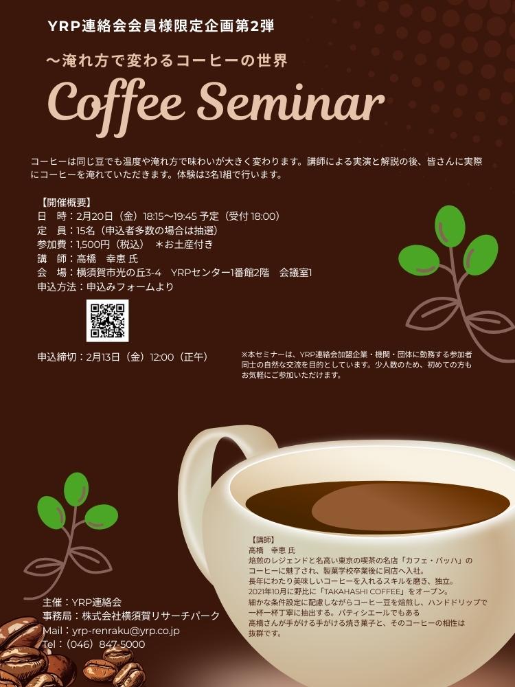 YRP連絡会主催の企画第2弾としてコーヒーをテーマにした少人数制のセミナーを開催します。